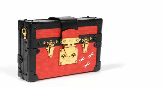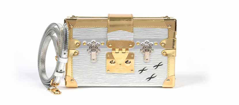 En cuir blanc, lettrage en bleu et noir. Accompagné de sa poignée. Carte d’authenticité, dustag et boîte.