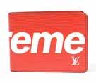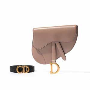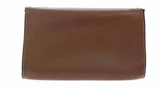 Comprenant une pochette en cuir marron et un petit portefeuille en cuir beige.