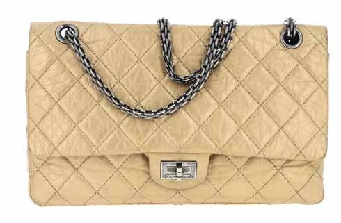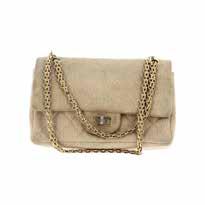 A beige jersey « 2.55 » bag, by Chanel. Circa 1970.