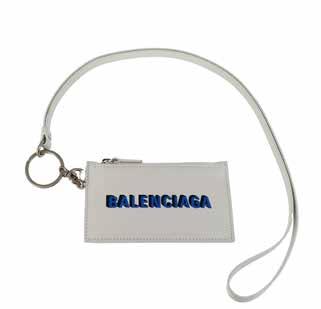 A white leather card holder, by Balenciaga.