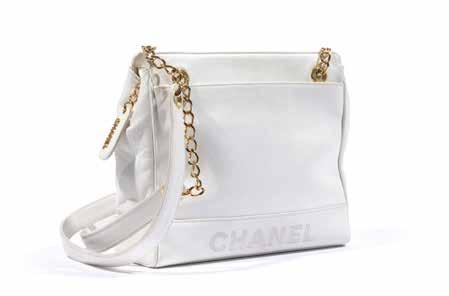 A white caviar leather and gilded metal bag, by Chanel. Circa 1997.