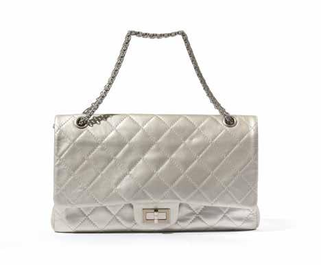 A silverish white leather « 2.55 Jumbo » bag, by Chanel. Circa 2009. 2 500 / 3 500 €