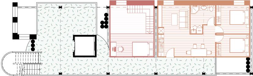 Through research on the Queensland Government's Social Housing Design Guidelines Toolkit, this project uses the following three apartment types as research references to fit the project's space consumption. Each unit is equipped with a combined bathroom + laundry and walk-through kitchen while ensuring natural lighting and ventilation in the bathroom. The space's functional distance adopts the standard minimum clear circulation width of 900mm