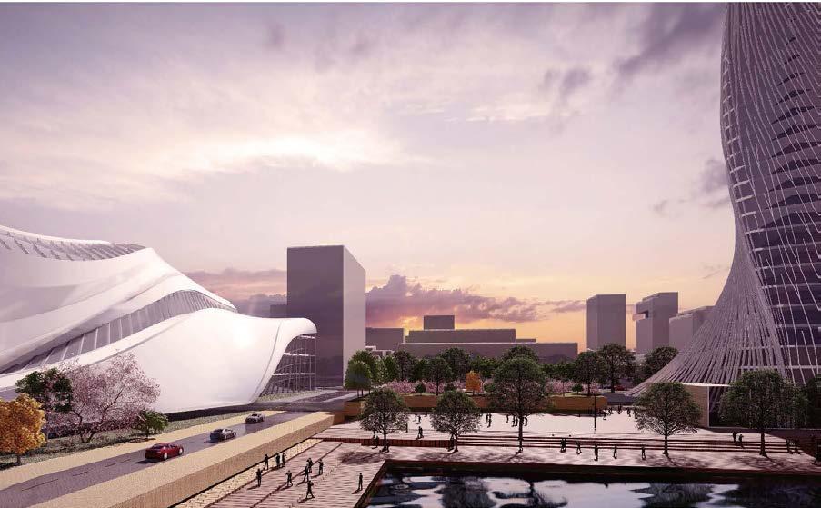 The tower houses hotels, residences, and commercial spaces, creating a vibrant city center. The auxiliary tower offers hightech office spaces, catering to diverse business needs and enhancing the work environment with amenities like an ecological green island. Plot 3, planned as a low-density commercial street, seamlessly connects with Wenli Lake, emphasizing the complex's commitment to harmonizing urban development with natural landscapes, epitomizing Quzhou's vision for a sustainable, people-centric future.