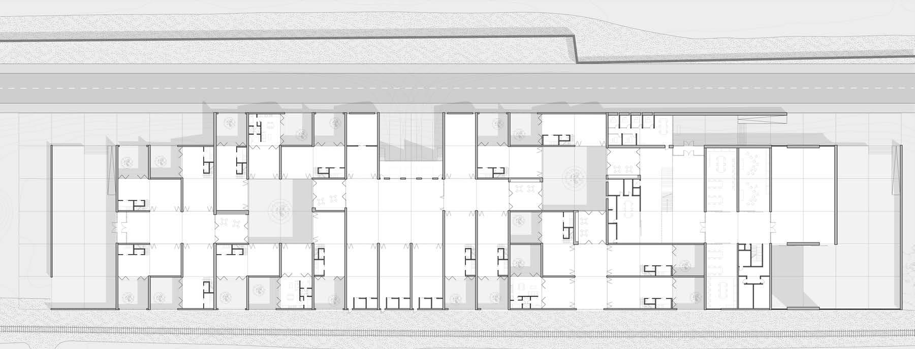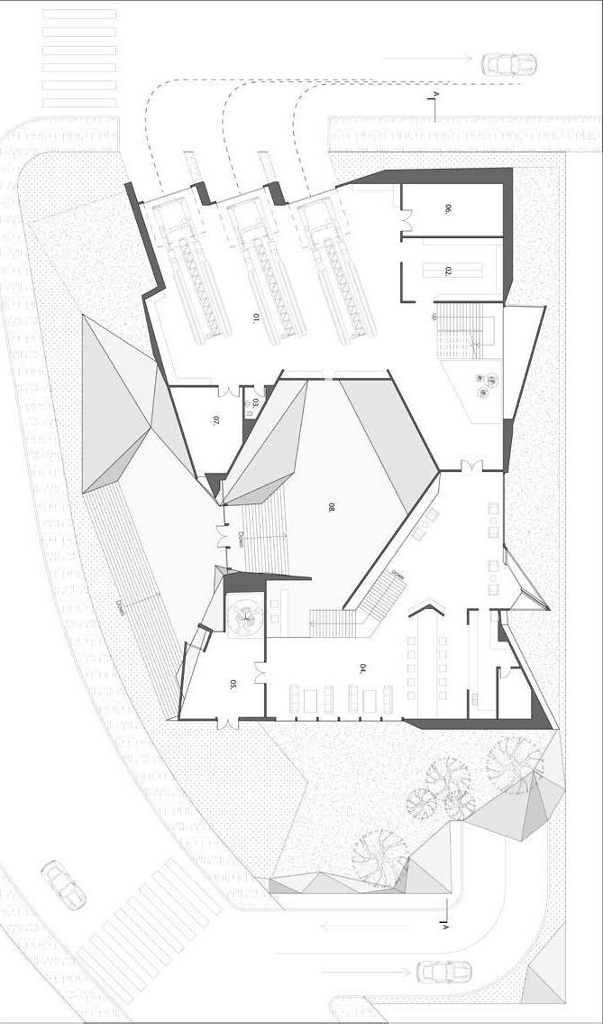 The design carefully considers essential aspects of a fire station—firefighting operations, fire truck accessibility, equipment storage, and living quarters for firefighters—all while engaging in community outreach. The separate dorms for firefighters, located near staircases for rapid access to the garage, demonstrate a thoughtful approach to operational efficiency.