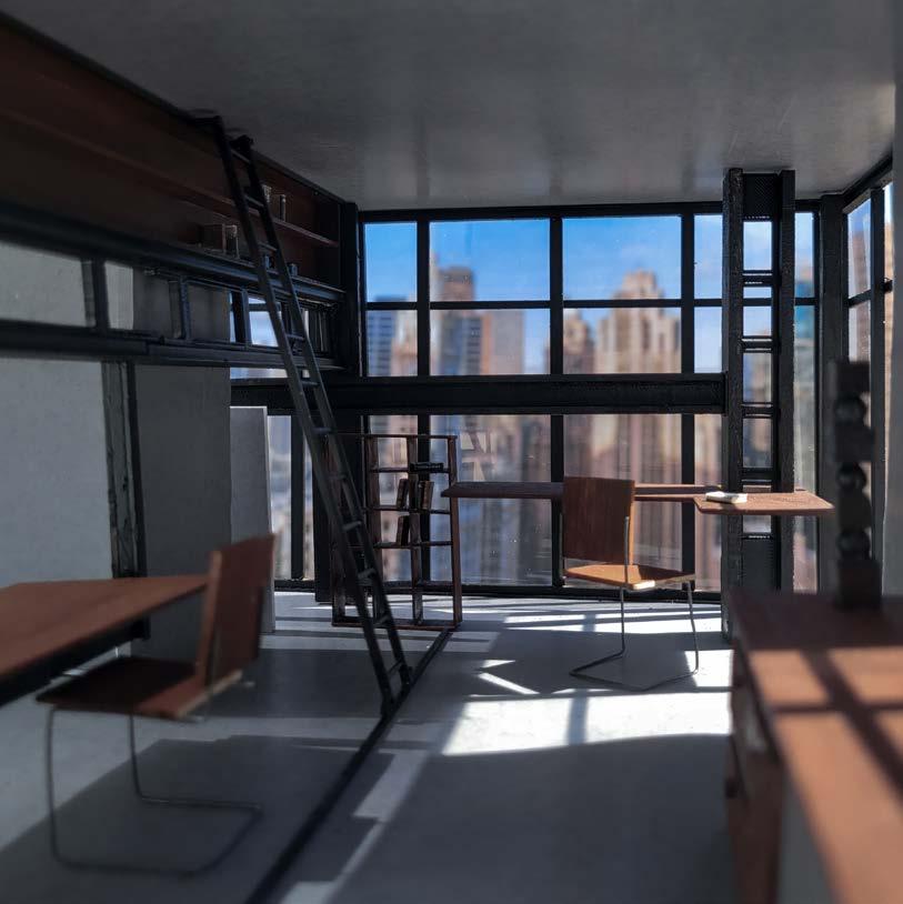 This project integrates the primary steel structure into the interiors of dwelling units in Chicago, a city renowned for its architectural innovation. By merging structure with aesthetics, the steel beams actively shape and organize the living spaces.