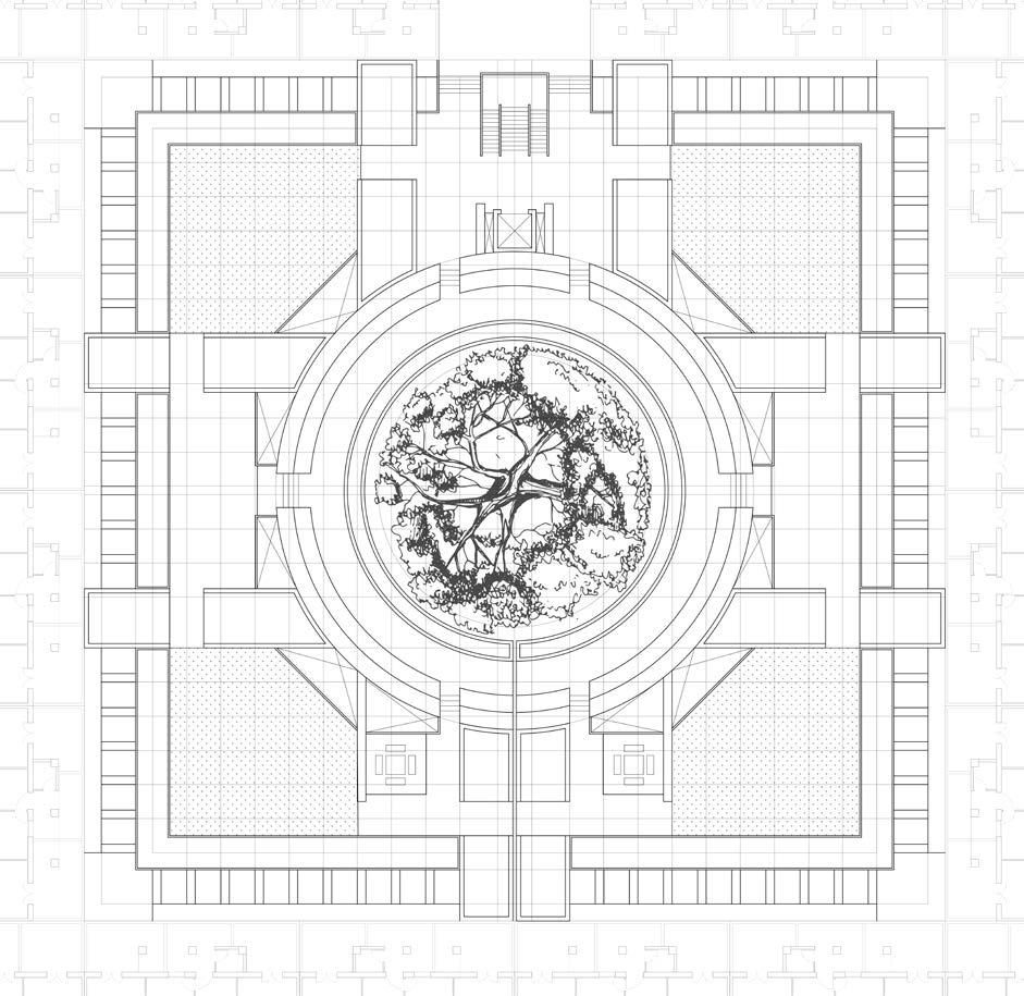 The tree is the absolute central core around which the entire structure and its functions revolve. It represents a living, breathing entity that requires time, water, and care to grow, embodying the intersection of nature and urban life. The design acknowledges that a tree needs time to mature, an aspect often overlooked in fast-paced city planning. Design the perimeter, and let nature weave the central rhythm.