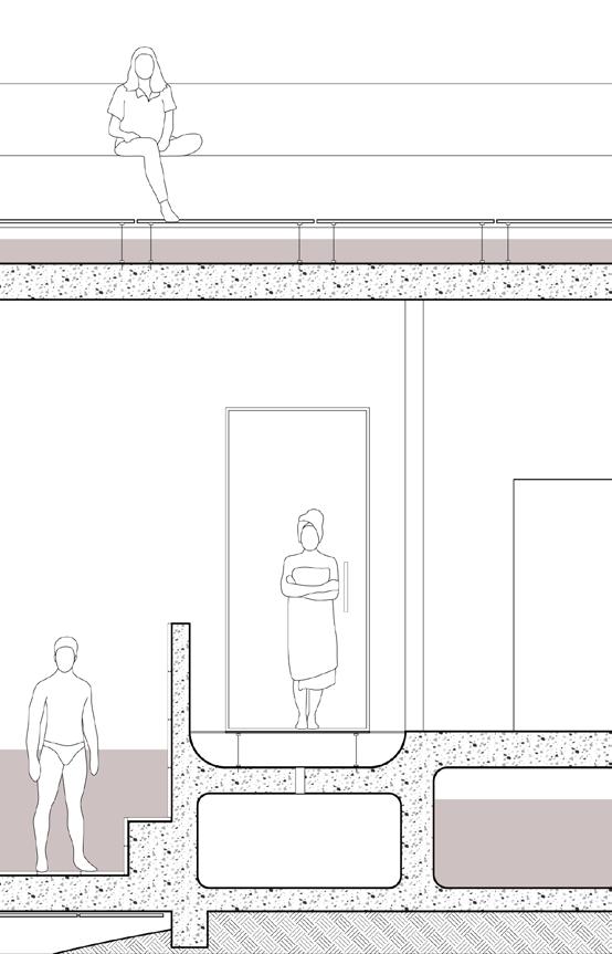 This project utilizes Gosaikunda Lake's water, heated by the lake's underlying geothermal energy. The design intricately connects to water's various states and its impact on the building. Pool walls are constructed with gabions, incorporating metal panels amongst the stones, allowing for natural weathering.