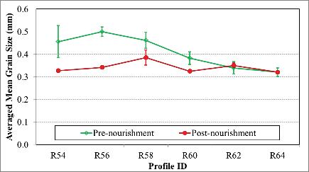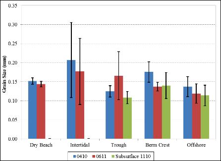 Figure 11. Alongshore sediment grain size in the berm project area at Perdido Key, Florida