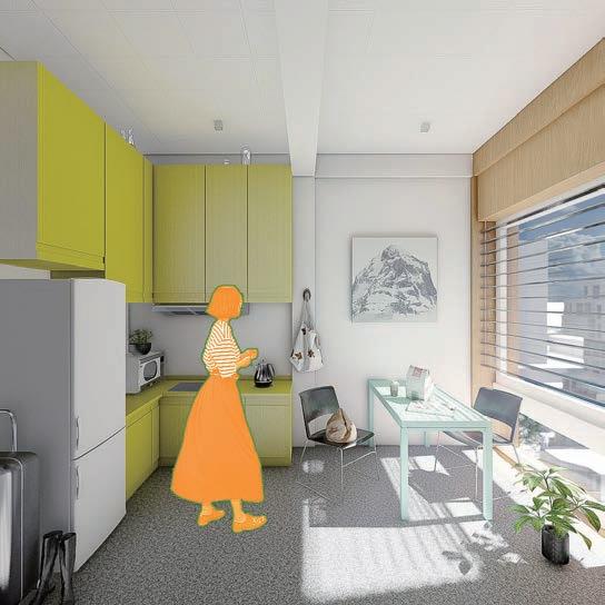 The independent counseling rooms will be interspersed within quiet activity spaces. Additionally, the public areas of the counseling zone will have ample lighting to avoid creating a sense of oppression for the users.