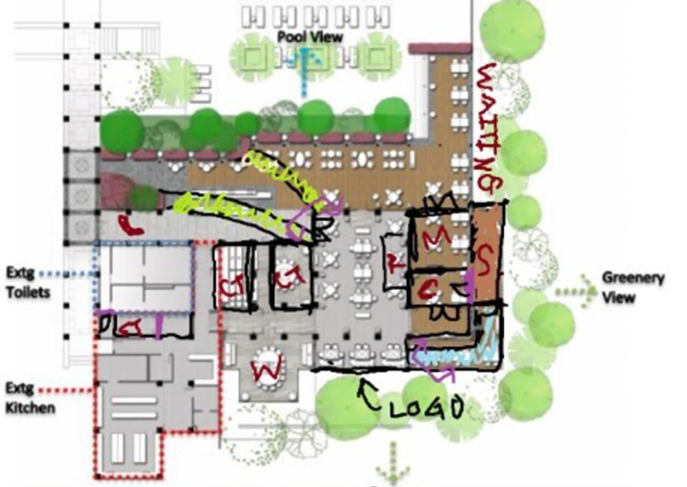 We planned it so that when customers have to enter the reception area before they are able to access the outdoor seating. Only paying customers are allowed to access the seating this is to ensure the exclusivity of the area.