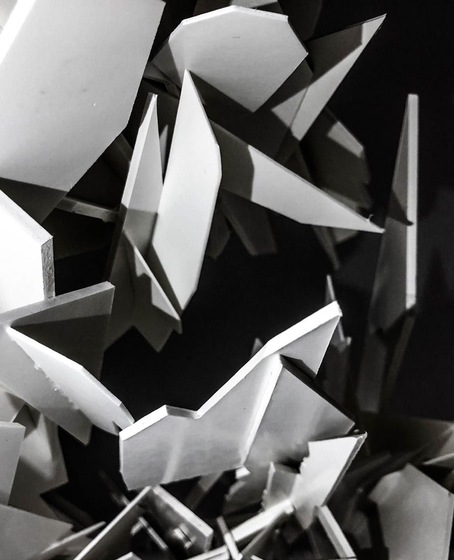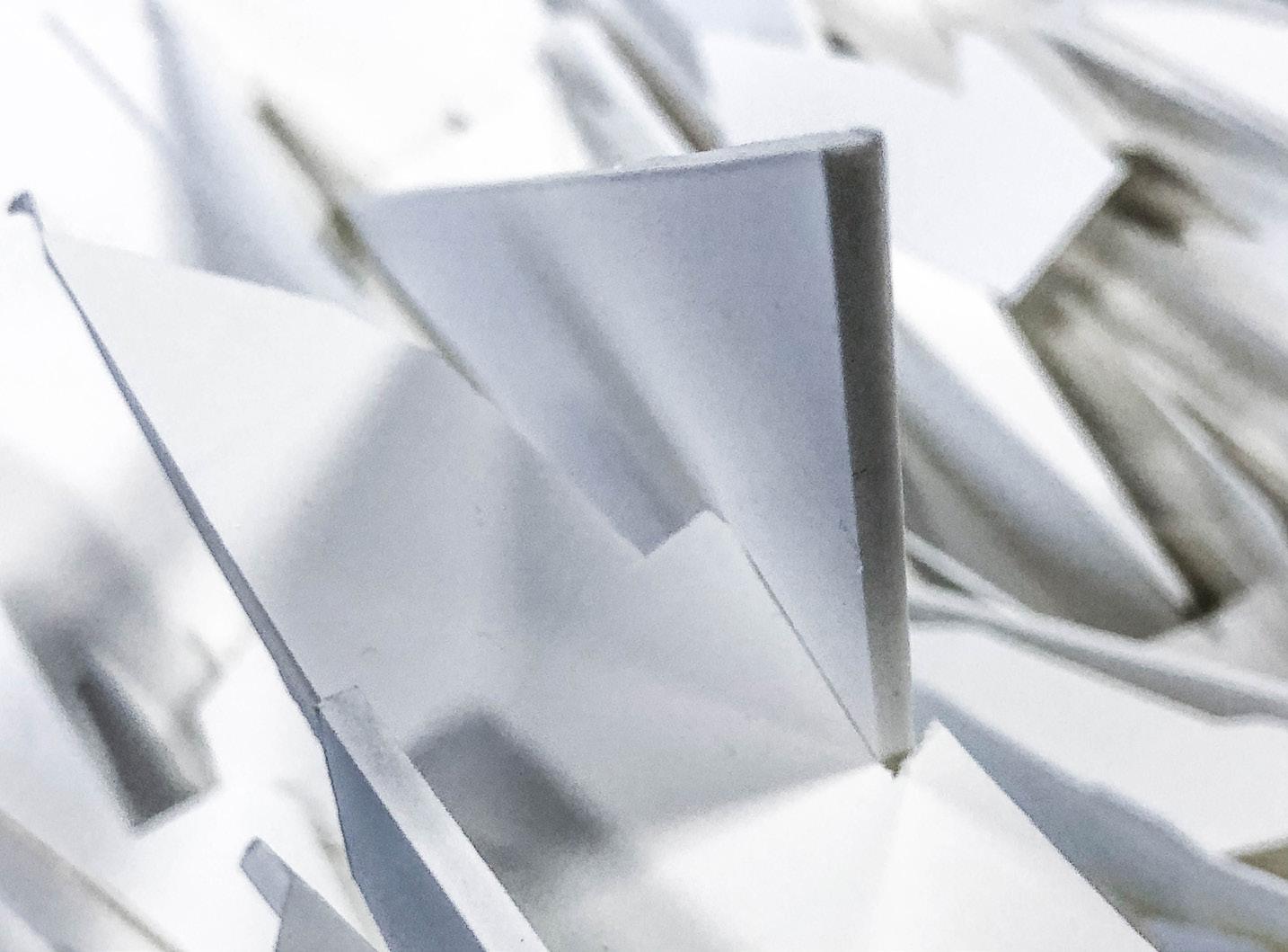 In an eye-catching mall like Funan, I had to really make my design stand out. The form of the facade is inspired by crumpled pieces of paper. Different textures and quality of paper are used to experiment with folds and creases that add to the spatial qualities.