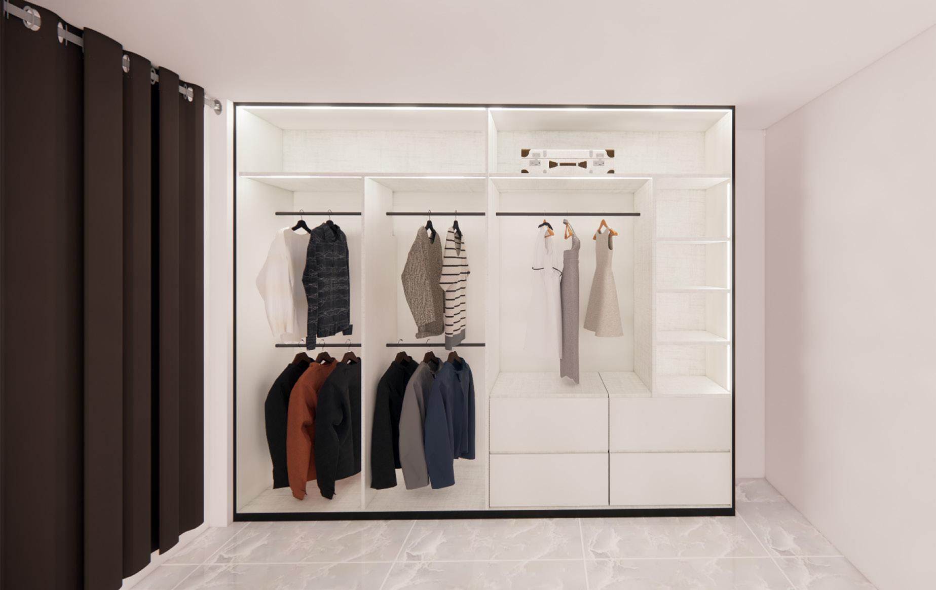 Built-in wardrobe with ample hanging space and folding space.