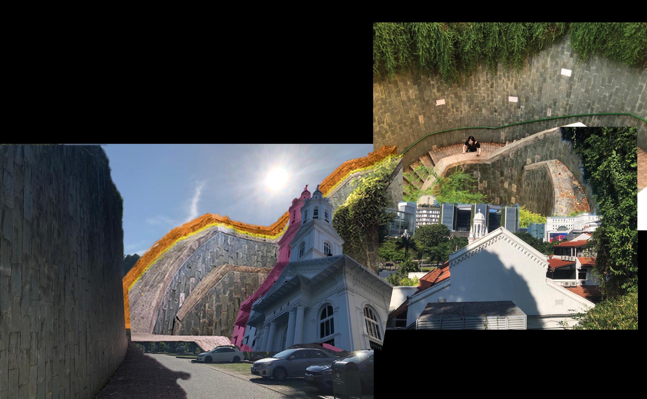 My slice passes through spaces like Church of the Sacred Heart, Fort Canning Carpark C, the spiral staircase in Fort Canning, YMCA, SMU as well as Rendezvous Hotel and lastly, NAFA.