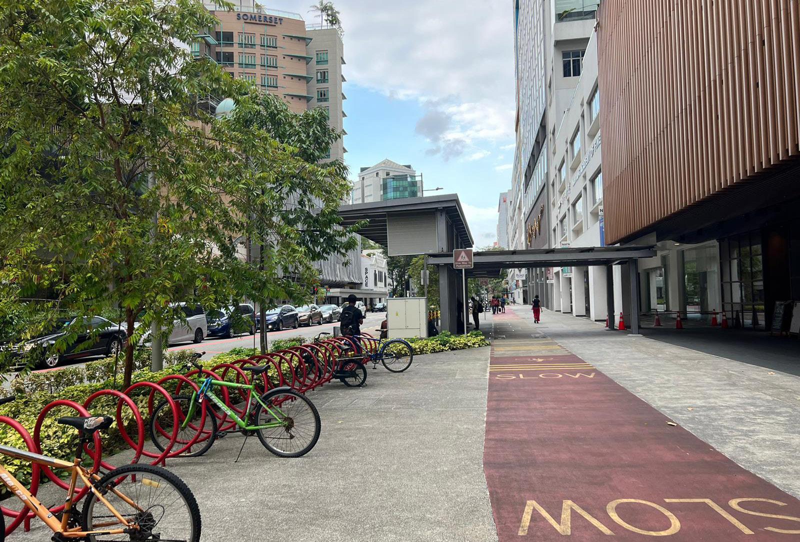 1.Bike stands with bicycles locked in are prominent in the area which must mean that people who frequently come here cycle. These people must be aware of the cycling path here.