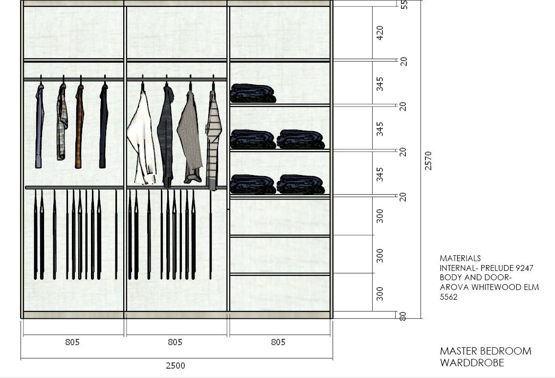 Feature wall to include fluted panels and curves. Glass sliding doors for wardrobe.