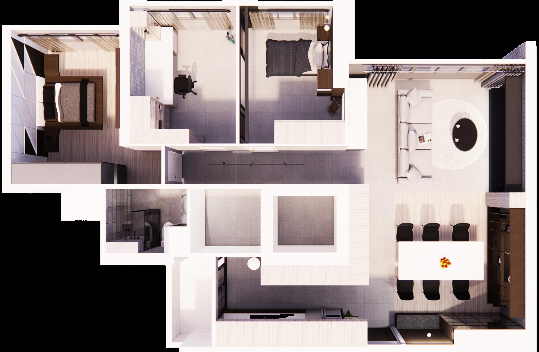 This project was the last project that was done for my 6-month internship at Lev3l and it tested my ability to do space planning for a residential as well as come up with different ideas. The spaces that were required were the living room, kitchen, 2 bedrooms and a common bathroom.