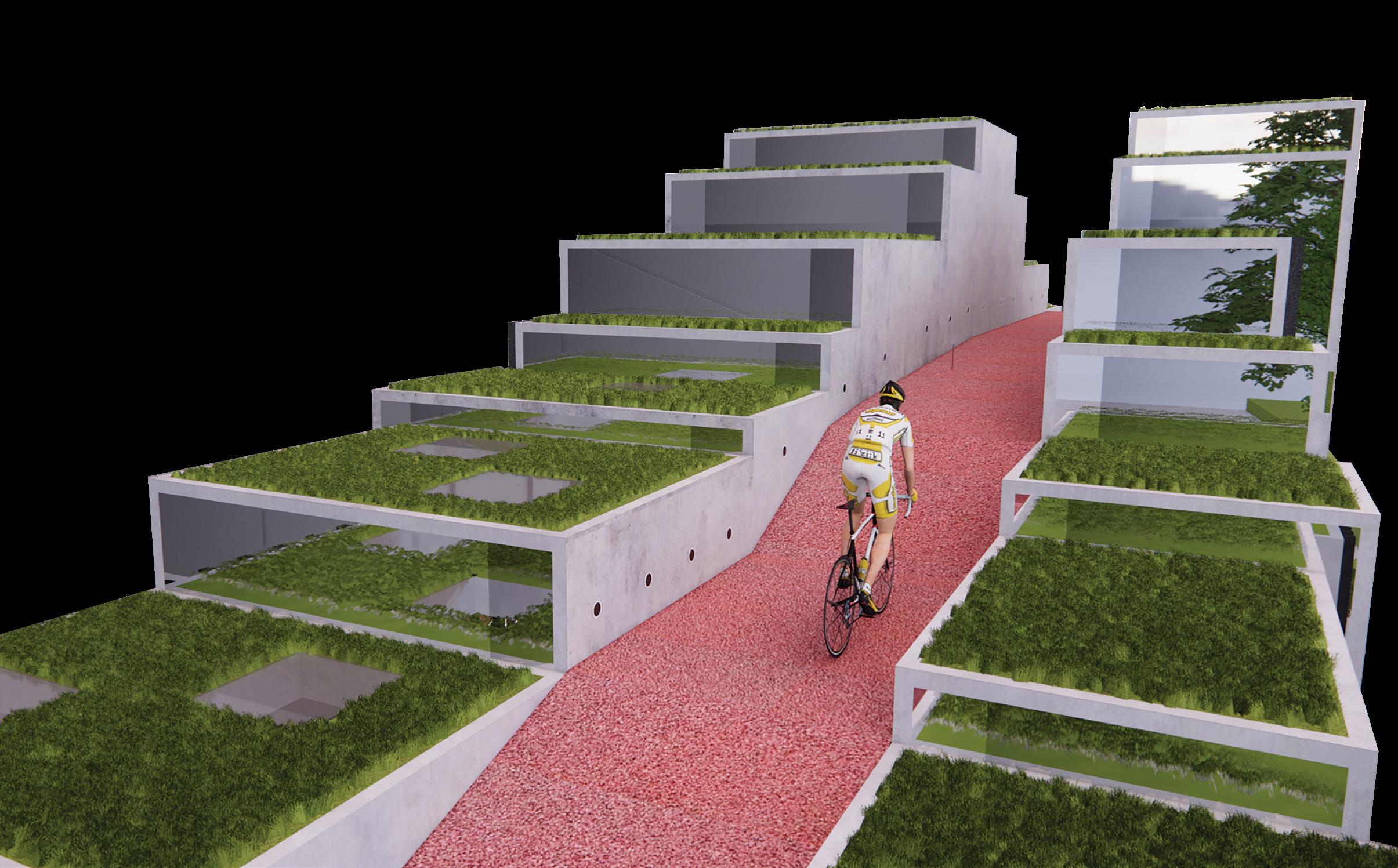 The downslope is called Fast Lane, where cyclist will increase their speed for a slight adrenaline rush.