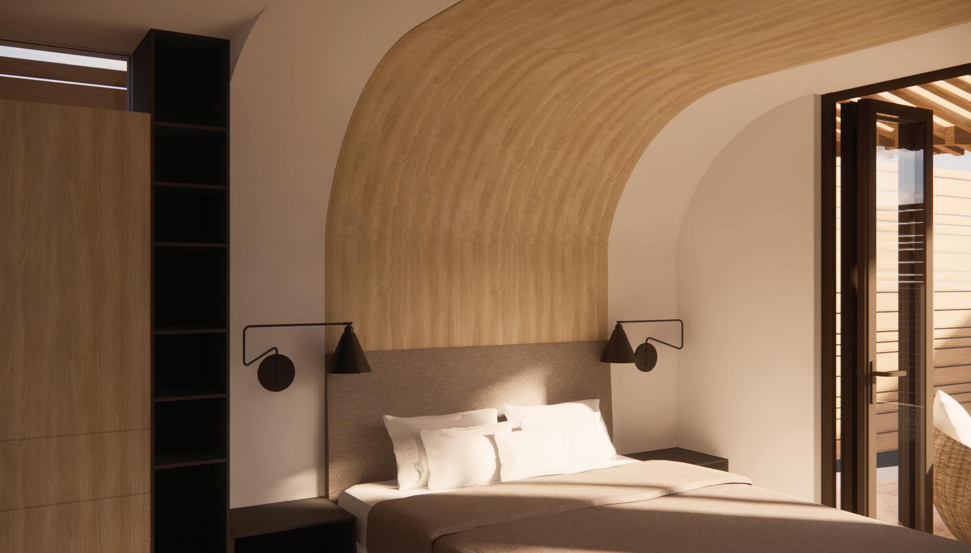 CURVED HEADBOARD CREATING UNDER THE WAVE COZY FEEL