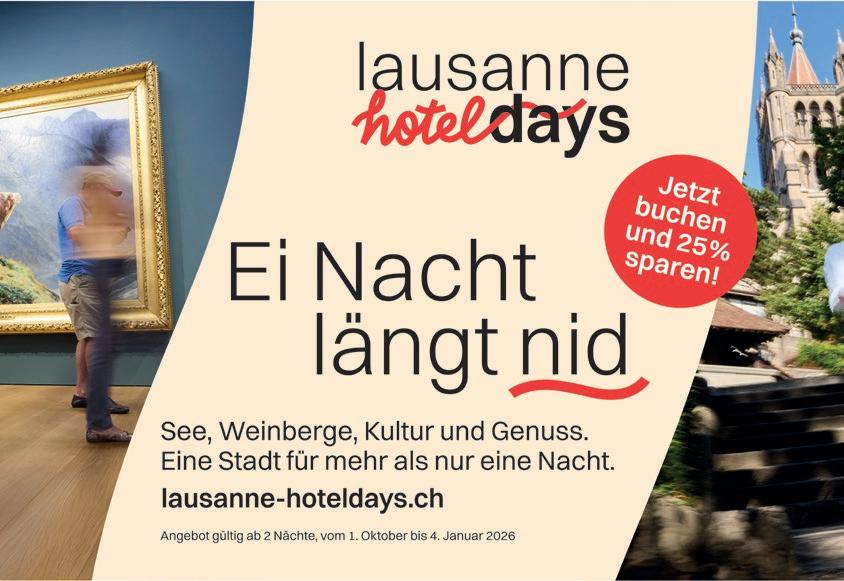 Développée en collaboration avec les hôteliers lausannois, l’offre Une nuit ne suffit pas a été proposée durant la basse saison, du 1er octobre 2025 au 22 janvier 2026. Elle offrait jusqu’à 25% de réduction dès deux nuits réservées et visait à encourager la prolongation des séjours, à renforcer l’attractivité de Lausanne et de sa région, ainsi qu’à soutenir l’écosystème touristique local.