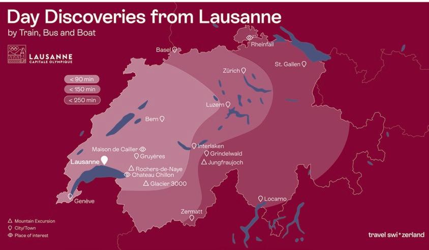 Lancé par Travel Switzerland, le programme Day Discoveries propose une nouvelle manière de voyager en Suisse en combinant séjour prolongé dans une même destination et excursions d’une journée en train, sans contrainte liée aux bagages. Lausanne figure parmi les points de départ de cette expérience, aux côtés d’Interlaken et de Lucerne. Cette approche favorise un voyage plus confortable, limite les déplacements avec bagages dans les transports publics et renforce le lien des visiteurs avec la destination et son offre locale.