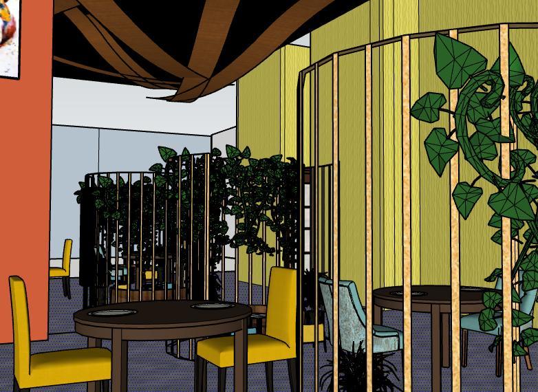These3dimensionalviewsgiveanoverallideaoftheambienceoftherestaurantinteriors followingamidcenturymodernstyleTheseweremadeusingSketchUp