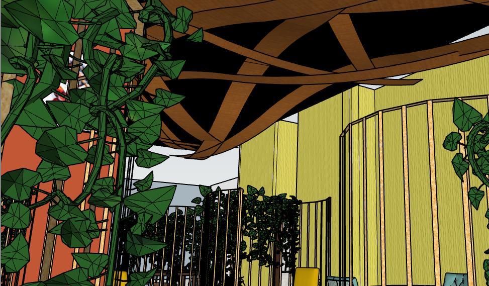 TheconceptdevelopedwasSolace,whichmeanscomfortduringatimeofdistressThisspacewasdesignedtogivea feelingofcomfortandsolacetoitsusers,followingtheuseofmid-centurymoderndesignwithanexceptionalceiling designthatshowsmovement.