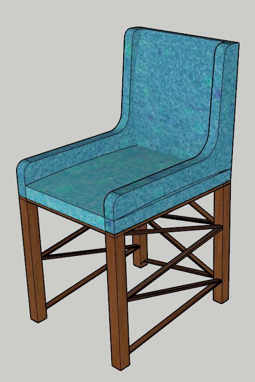 Thisisachairthatwasdesignedforthecafe.Thechaircomeswithaunique designThelegsandframeofthechairismadeofwoodThespacebetween thelegsofthechairhasgotazigzagpatternTheseatingisofbluevelvet materialTheuseofrepetitivepatternhasbeenusedasitiswellsuitedfora midcenturymodernsylespace