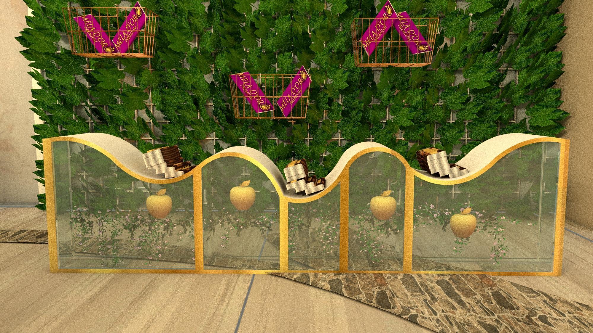 Curveddisplay Receptioncounter Tastingcounter Entrance Livecooking stationandgift wrapping Premium collectionzone Exit 1 2 3 4 5 6 7 S.NO DESCRIPTION TheplanlayoutshowsthespaceplanningoftheretailstoreAsoneenters,themazelikedisplay areaisseen.Asonegoesthroughthemaze,theyfinallyreachthegodessherawiththegolden applesAlivechocolatestationaswellasatastingcounterhasbeenprovidedApremium collectionzonehasalsobeenprovidedforcustomers. FURNITURELAYOUT