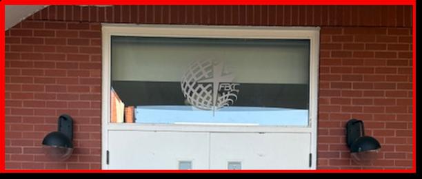 FBCC Logo Decal over the Fellowship Hall Doors