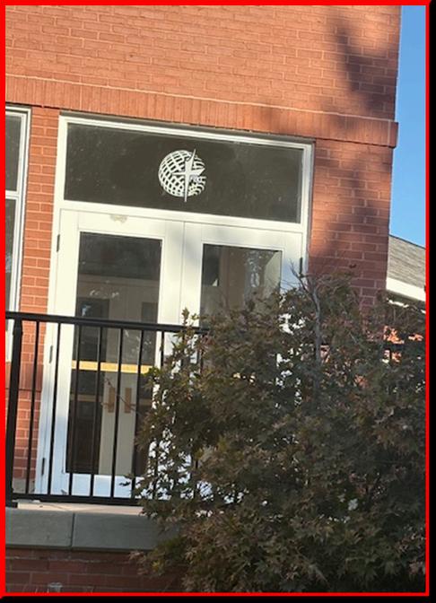 Logo Decal over the Front Double Door’s Church Entrance