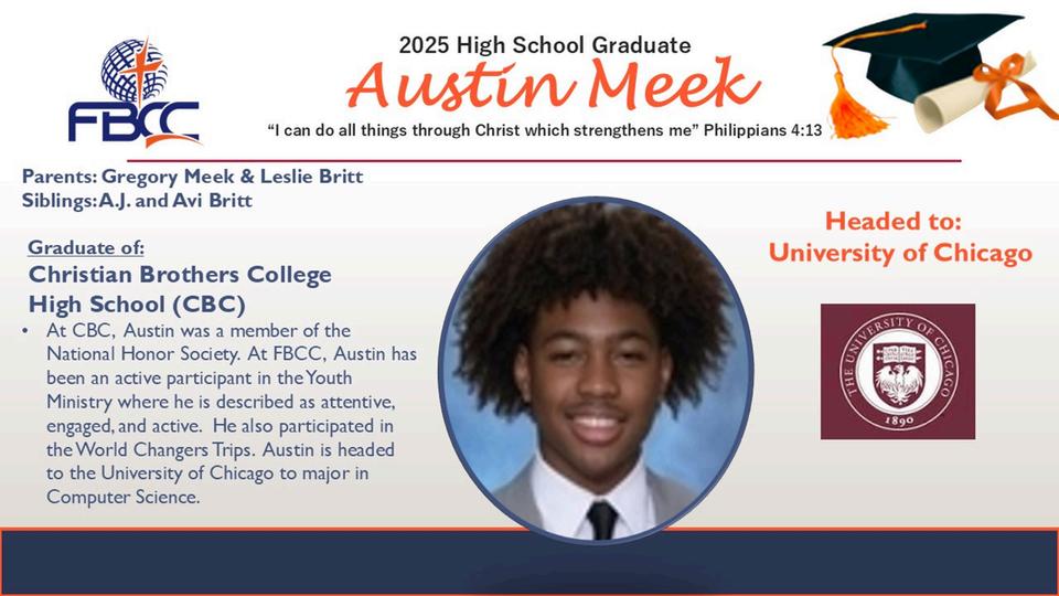 To our students, from preschool to graduate school, remember that you carry the light of Christ into your classrooms, campuses, and friendships. Let your words, actions, and attitude reflect the One who has called you to shine (Matthew 5:16). To our parents and families, may God grant you wisdom, patience, and strength as you guide and support your children. And to our teachers, administrators, and staff, thank you for your dedication to shaping lives; we pray that the Lord will replenish you daily and use you as instruments of hope and encouragement.