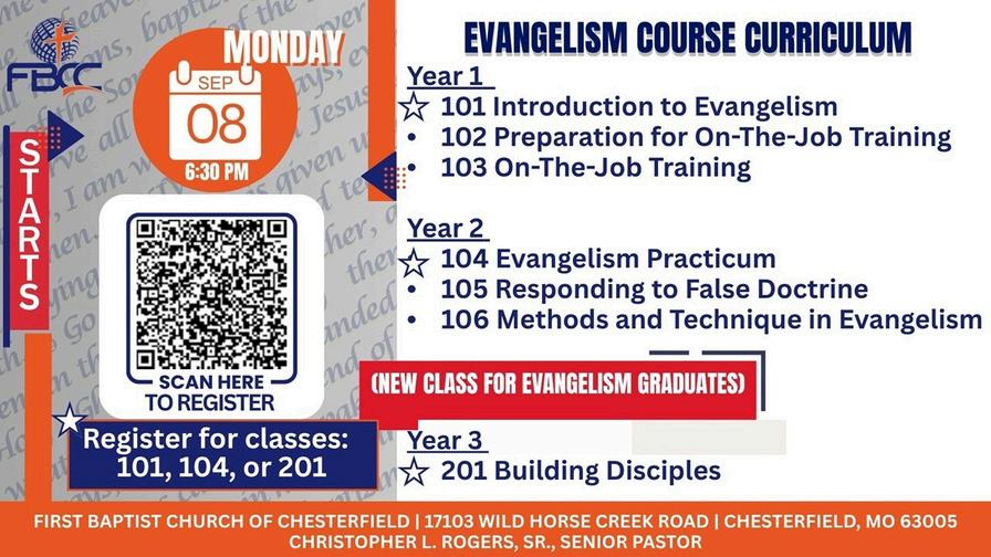 To advance the Kingdom of Jesus Christ in accordance with Matthew 28:18-20, through preaching of the Gospel, consistent Christian living, personal evangelism, missionary endeavor, Christian education, and the public worship of God.