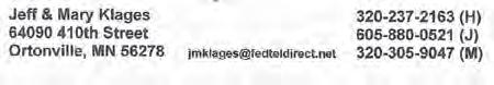 Kirk: 605-973-2351 Cell: 769-9991 Brooke: 605-765-2248 Cell: 769-9992 Ken & Bonnie: 605-765-2335 Cell: 769-9999
