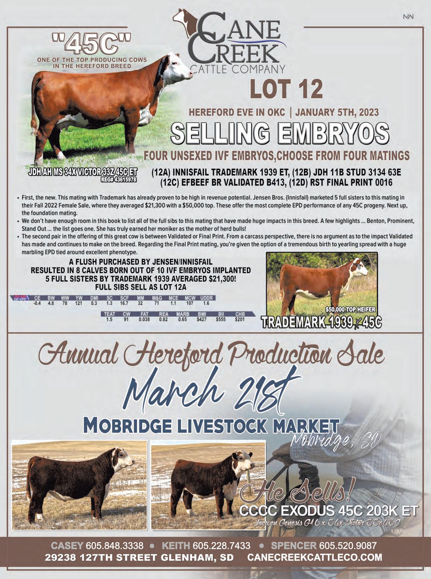 23 NCC Hereford Bulls, Heifers and Embryo/Semen Package Sale Kearney, NE