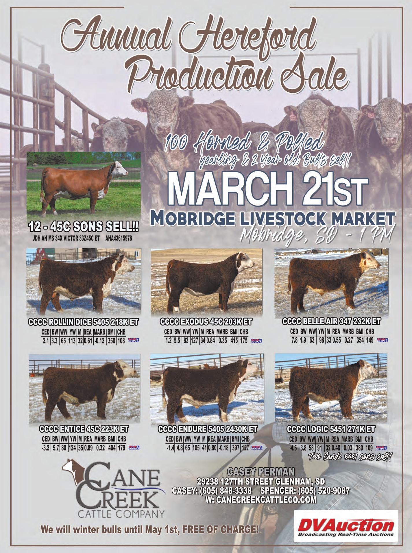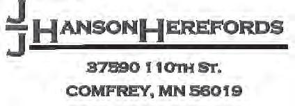 Inquire about the total package … videoing, video sale, online bidding and clerking. Contact us for more information. Marc Hotchkiss - 605/210-1956 marc@thelivestocklink.com 13823 Beaver Creek Place, Reva, SD 57651 THE BEST IN LIVESTOCK VIDEO PRESENTATION Phil Eggers 605/351-5438 phil@thelivestocklink.com Check out the latest VIDEOS at www.thelivestocklink.com KLAGES HEREFORDS Bulls and females for sale by private treaty. d “Quality” not “Quantity” Hereford Cattle Schmidt HEREFORDS 787 70th Avenue Pipestone, MN 56164 Jenna McGunegill (507) 215-1720 John A. Schmidt (507) 215-1037