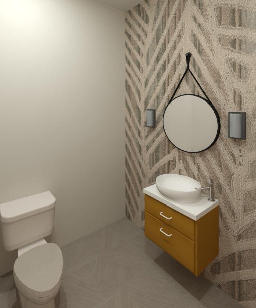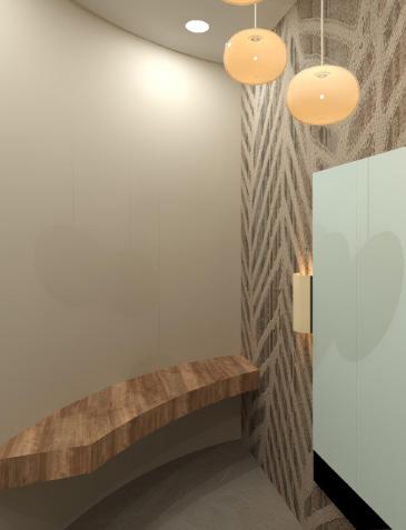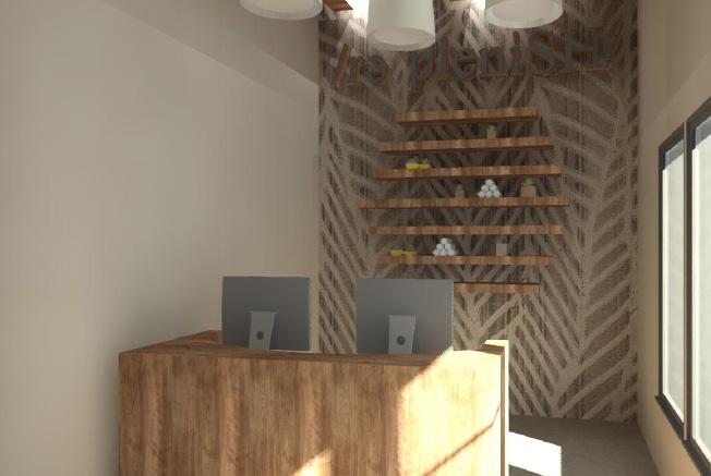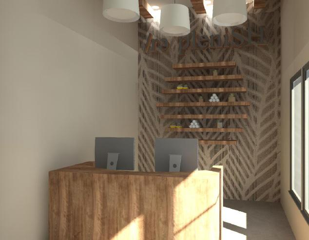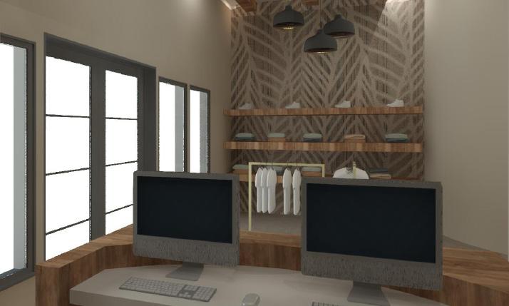 For this althetic and loungwear company, I wanted to appeal to everyone who would be coming into this small business space. Using black and wood accents to highlight on a soft masculinity within the design. While highlighting on feminity with the cool tone and nature inspired materials. Using a mix of materials have allowed for an inclusive, welcoming, and modern space. This allows for an optimal customer experience for anyone walking into the space.