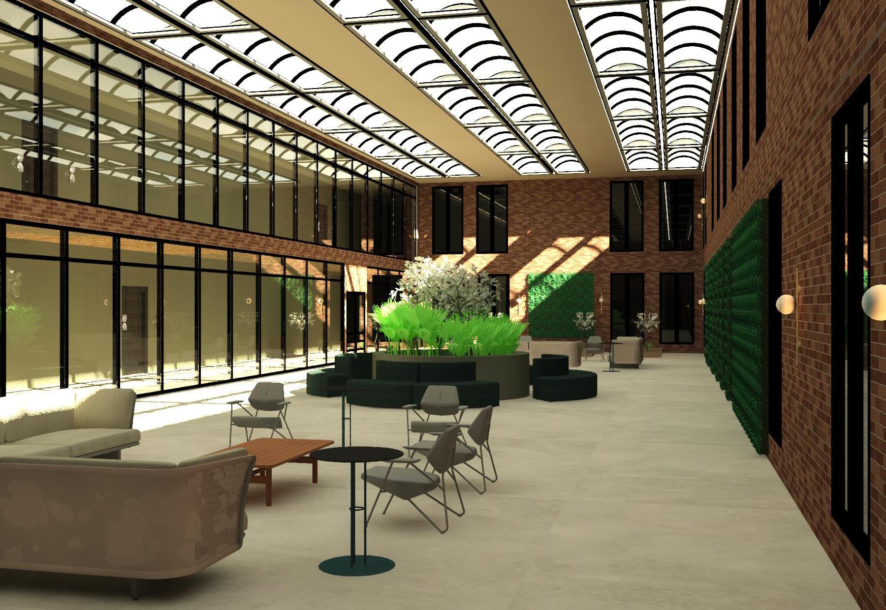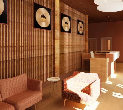 For my marketing office, I chose to focus on marketing R&B vinyls. I wanted to highlight on the warm feeling surrounding R&B music and the feeling of listening to music on a vinyl record. This space was designed to reflect a warm and contemporary style throughout.