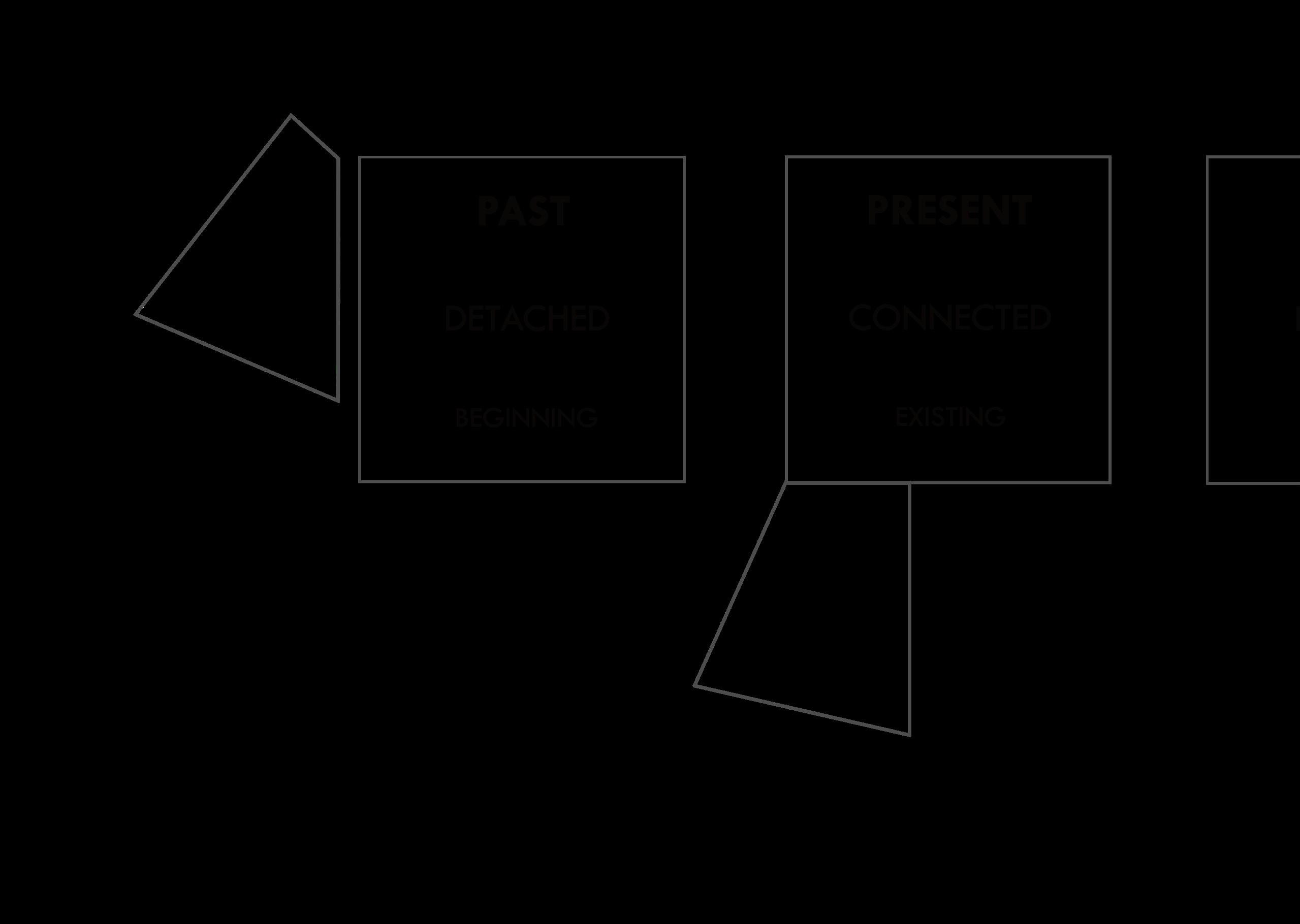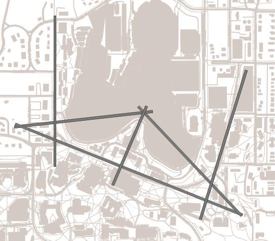 The three main rooms in this project were the Memory room, Present Room, and Future room. Using the geometry of the site location on the end of Jayhawk Blvd. where Chi Omega currently stands, It created ties to three corresponding views. The Memory room faces Allen Feildhouse to tie that large part of KU’s history to the experience. The Present room faces Jayhawk Blvd. do to being present in the college courses. And the Future room faces the Campinelle to show the experience of finishing college and walking under as the KU traditions pan out. The Memory room is on the lowest level, then up a few steps is the Present and the Future room is the highest level, to emphasize the climb of the journey through college.