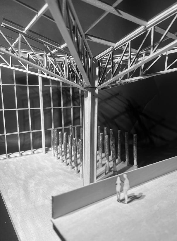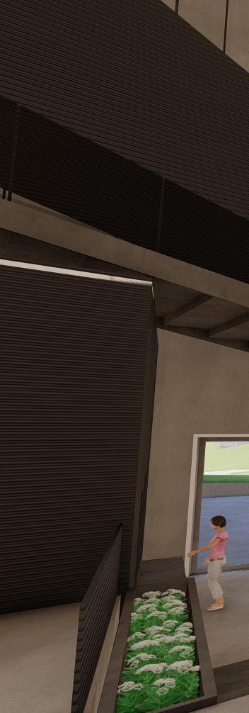 This project had a program of 16 spaces to make up a aeroponic vertical urban farm. It is used to revitalize and help surrounding food deserts by effieciently growing plants from seeds using less of a footprint.