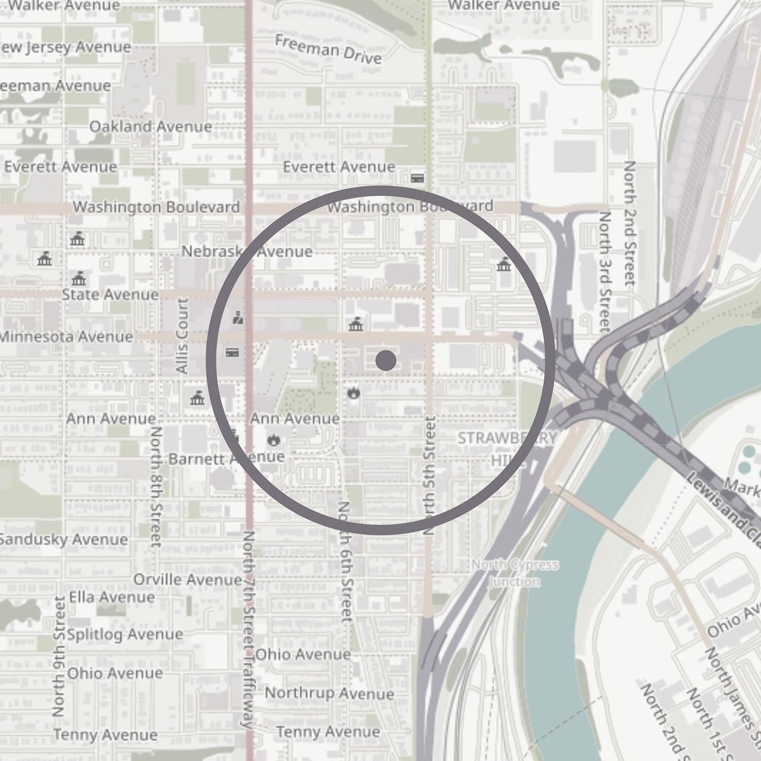 When on site facing north, it faces Minnisota Ave. which is a very trafficed area in Kansas City. To the east is 5th street, which is the let off for a lot of exits off the highway. After doing some research on the site it also happens to be a food desert area in Kansas City in need of a business such as this. This site easily influenced the best layout for external services of the program.