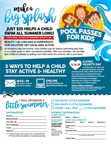 On February 14, 2019, go to givingheartsday.org and donate $25 to help a little swimmer. Your gift will be matched through Dakota Medical Foundation’s 24-hour online fundraising campaign, allowing us to give an additional swim pass to a child in need.