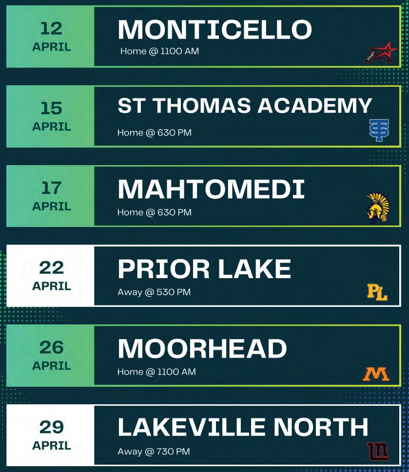 VARSITY 2025Nick WallraffSeth KolehmainenEthan WollakLiam ThomasSean StevensonConnor KingGabe JelenCharlie HeinleinBrooklyn EvansJackson ThomasReid NegaardSawyer EisenLuke HansenBlake PavekJoey WillCharlie SiskOdin OberhamerCharlie Fiļ¬eld