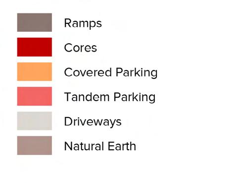 Basement levels are minimally excavated and designed for natural ventilation, reducing environmental impact.