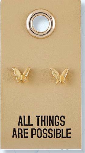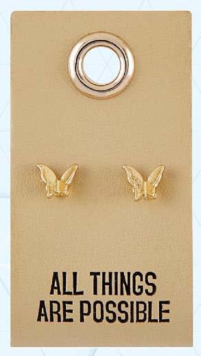 Leather Tag Earrings - Butterfly (All Things Are Possible)