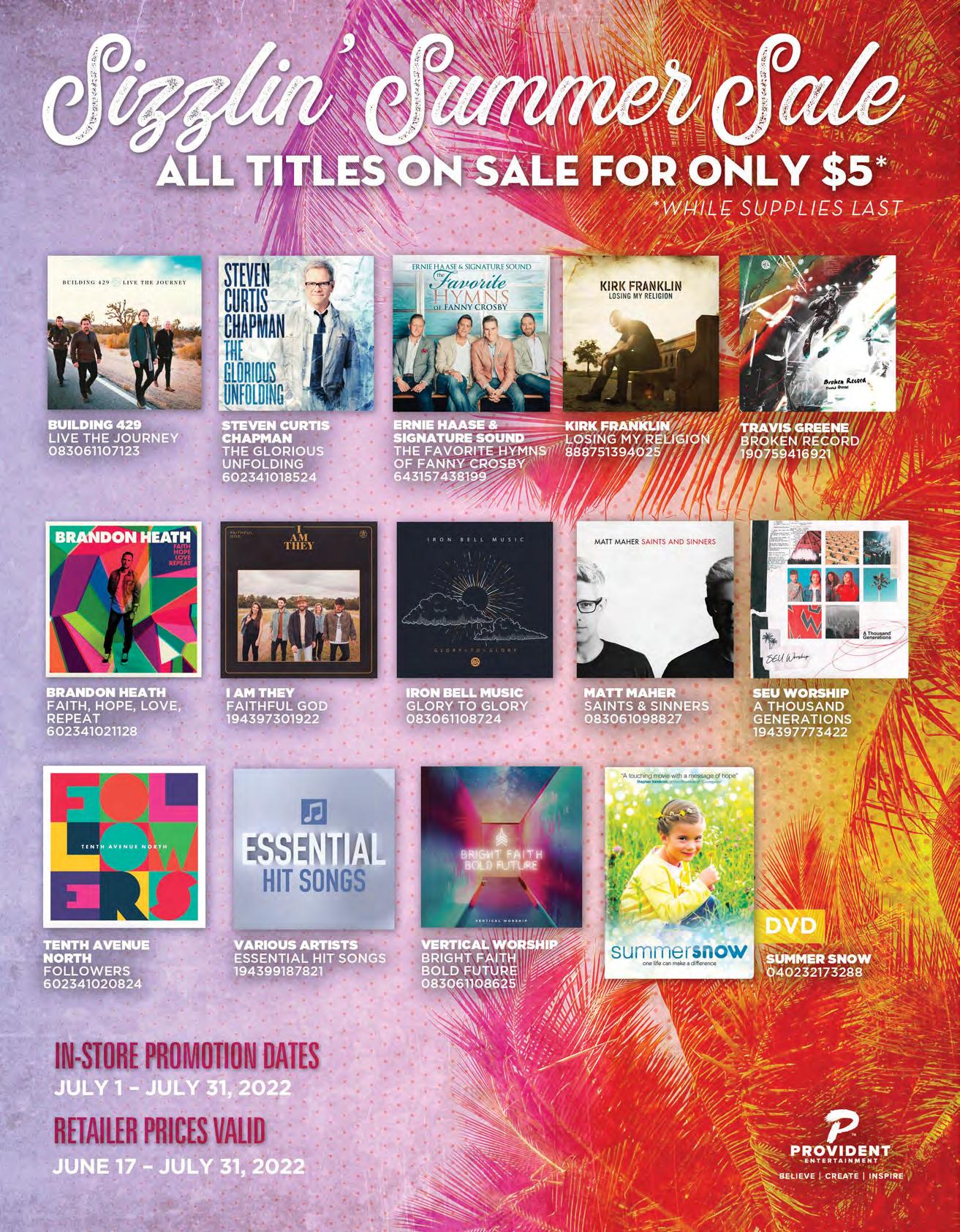 50% Discount on these Summer Fiction titles from Kregel Publications when you order any quantity. Sale expires July 31, 2022. Sale Prices as low as $5.00 on select CD’s & DVD’s from Universal Music Group when you order any quantity. Sale expires August 31, 2022. Only available to US accounts.