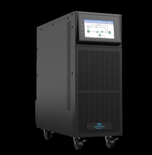 The Continuum ChargeMaster Series is an online double-conversion UPS that provides best-inclass performance for 1-20kVA applications, featuring compact size, high power density, classleading efficiency and flexible configurations to ensure that you have a reliable option for all of your requirements. The load is powered continuously by the inverter which supplies a sinusoidal voltage, filtered and stabilised in terms of form and frequency. Input and output filters provide significant further immunity from electrical disturbances and lightning strikes.