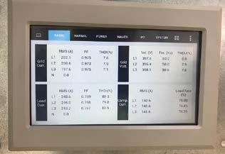Once the Sinexcel Active Filter was commissioned and turned on, its effect on the electrical system was immediate and very obvious. The existing Harmonic Distortion was at an unprecedented 80% (horrendous!) and the Active Harmonic Filter compensated it down to 7.5%. By redirecting the THDi and improving the distortion power factor, the Active Harmonic Filter was asked to correct the displacement power factor and this culminated in a grid power factor of 0.975 and a reduction in grid current. This was a significant improvement of the reduction of the stress & heat experienced by this local electrical network.