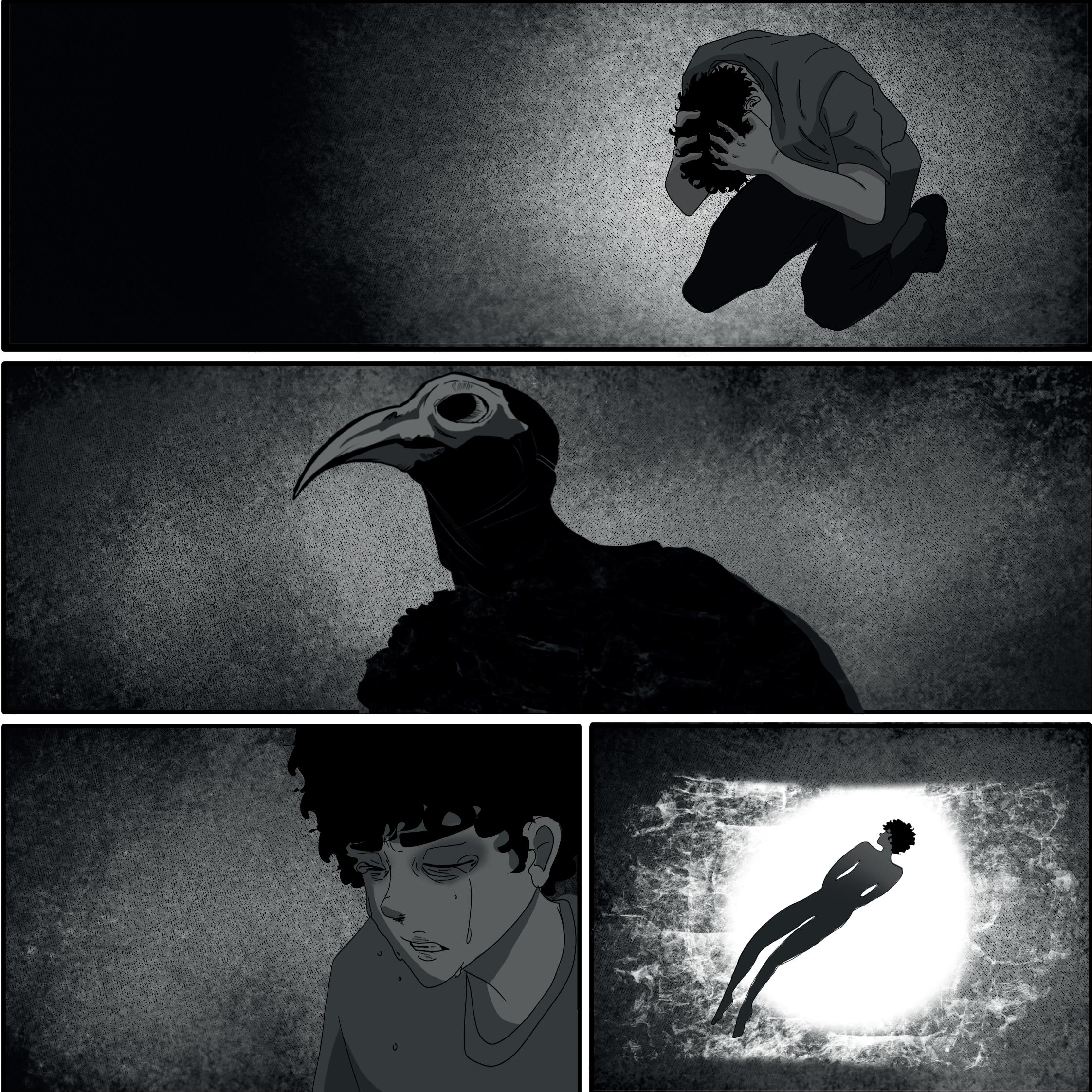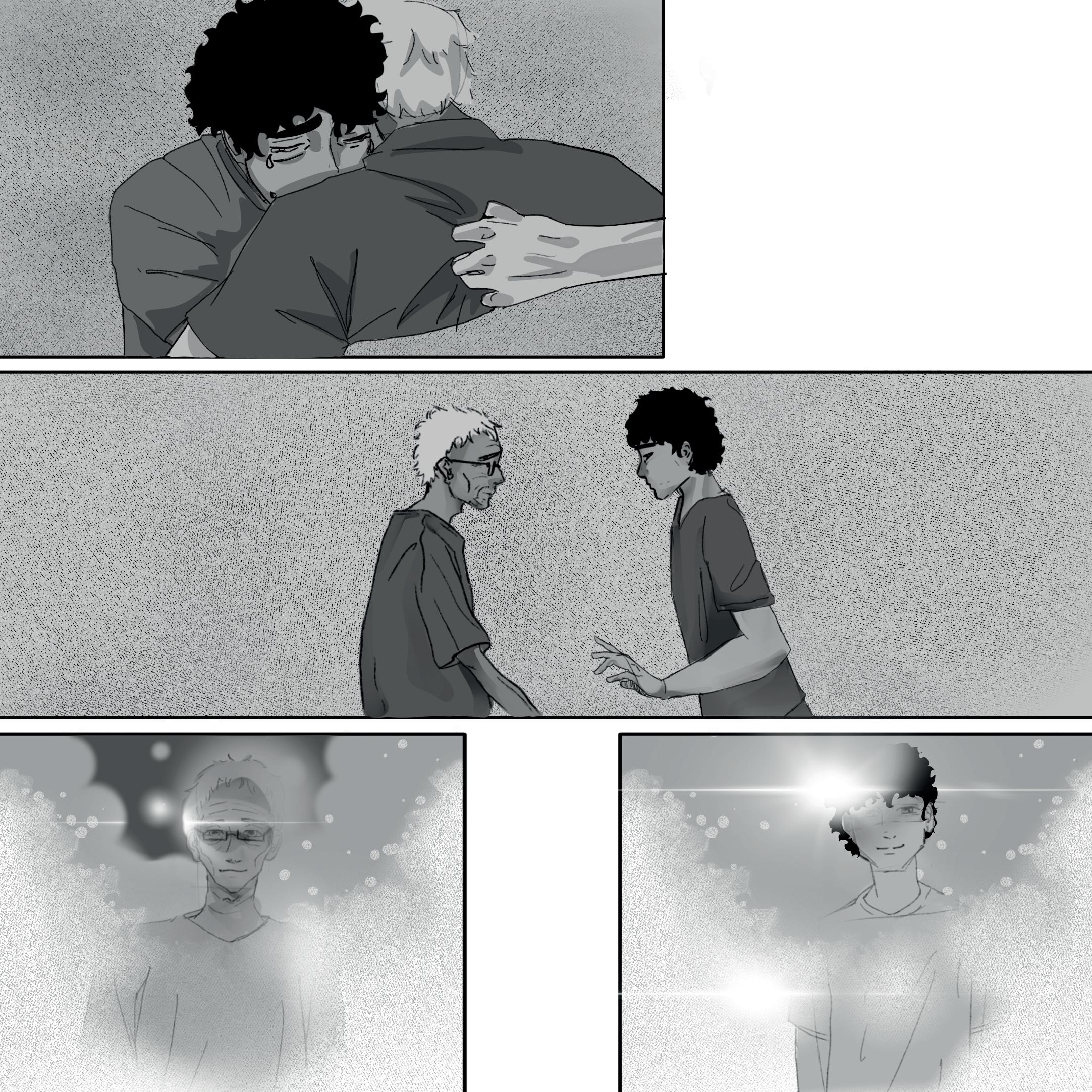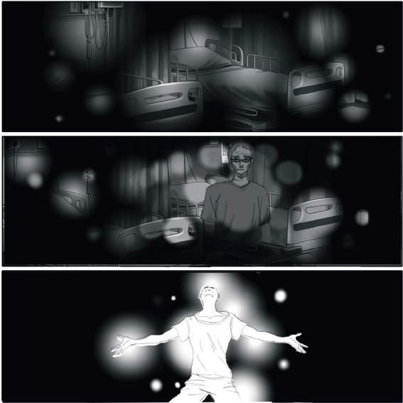 De repente, la habitación del hospital comienza a desvanecerse y Luis siente cómo es transportado nuevamente al vacío brillante del "limbo".