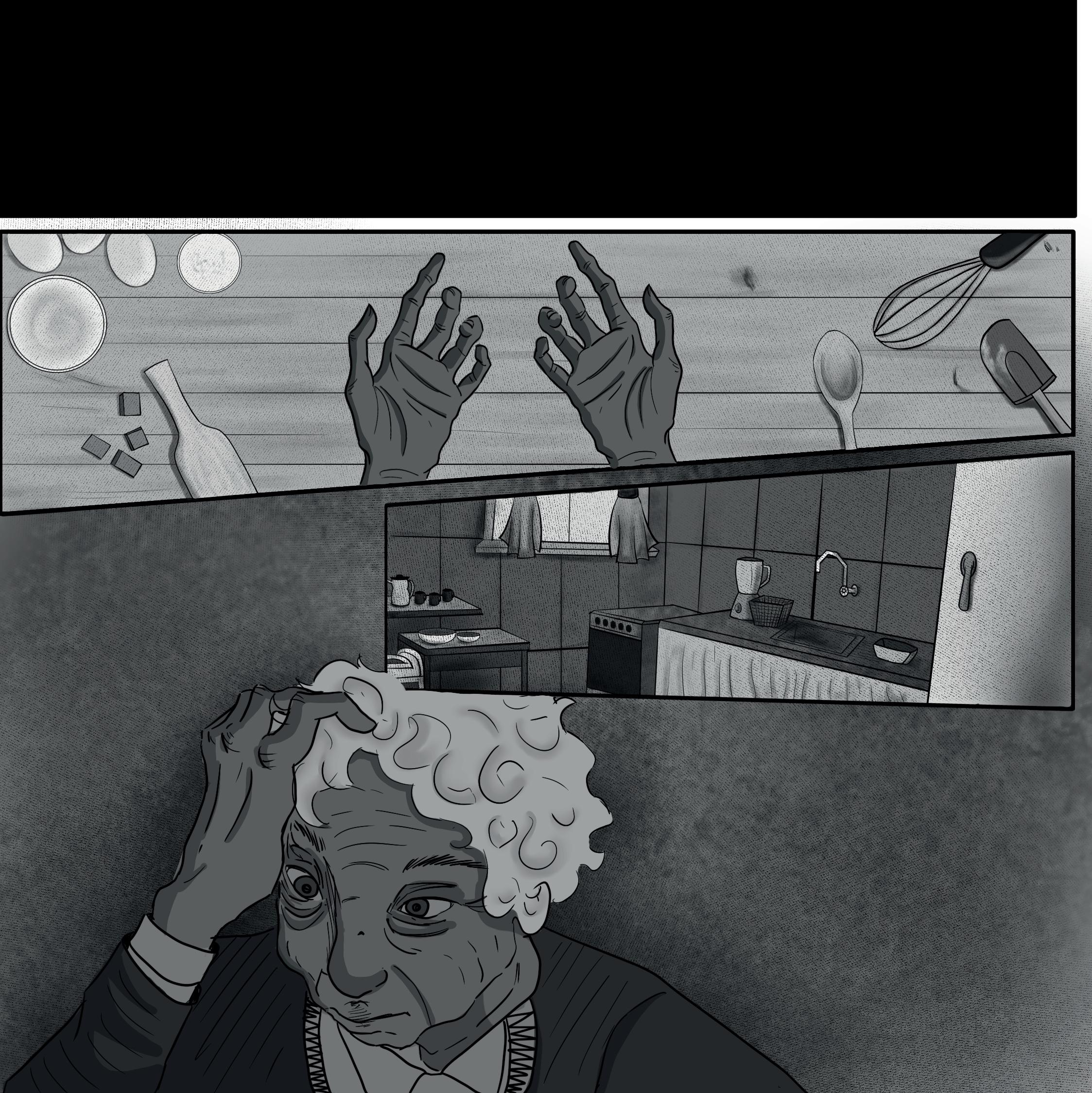 Luis, ahora siendo guiado por el cuerpo de Raúl, va al café donde se había planeado la pequeña reunión.